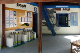 Le centre de plongée Sub Aqua est installé sur l'île de Thulhagiri. Il est géré par une petite équipe qui connaît parfaitement tous les sites de plongée à proximité. Le centre est situé proche de la jetée principale, idéal pour les plongées du bord sur le house-reef où vous pourrez plonger avec votre binôme en autonomie. Des sorties en bateau sont également organisées deux fois par jour.