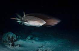 Après la traversée vers le Nord de l’atoll de Alifu (Ari Atoll), on vous proposera sans doute une plongée de nuit sur le sec de Maaya Thila. Cette plongée est réputée pour sa grande activité nocturne, notamment les scènes de chasse des requins de corail à la tombée de la nuit. Vous plongerez dans la zone protégée autour de Fish Head et non loin de là, en saison, c’est à Moofushi Manta Point que l’on peut croiser quelques majestueuses raies.