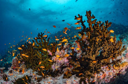 Dans Vaavu Atoll, communément appelé Felidhoo, vous ferez une plongée matinale à Miyaru Kandu pour observer les requins, puis une plongée de nuit à Alimathaa Housereef, en bordure de cette île-hôtel.