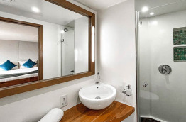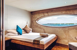 | Aménagements cabines | 17 cabines : 8 cabines Sea Star et 1 Cowrie Suite au pont inférieur, 5 cabines Manta Suites et 3 Dolphin Suites au pont principal. Certaines cabines peuvent être reconfigurées pour accueillir 3 personnes. Chaque cabine bénéficie de l’air conditionné et d’une salle de bains privative. Wifi disponible |
