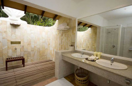 Toutes les chambres sont équipées d’air conditionné, ventilateurs, salle de bains semi-ouverte avec douche intérieure et extérieure, minibar, coffre-fort, nécessaire à thé et café, téléphone, télévision avec chaînes satellite, sèche-cheveux.