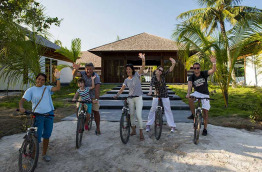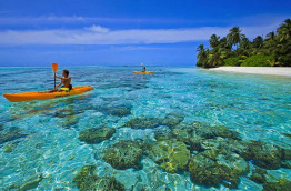 Avec participation : kayak à fond de verre, stand-up-paddle, planche à voile, kitesurf, catamaran, cours privé de yoga, cours de cuisine maldivienne, sorties snorkeling en bateau sur le récif, prestations de plongée sous-marine, sorties en mer pour la pêche ou la découverte des îles voisines dans l’atoll, randonnées pédestres, safaris à la rencontre des dauphins, raies manta, requins-baleines...