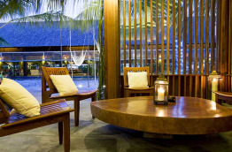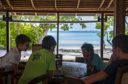 Afin de se conformer aux coutumes locales, l’alcool n’est pas servi à l’hôtel, ni ailleurs dans l’île. Un bar servant de l’alcool, est installé sur un bateau dans le lagon.