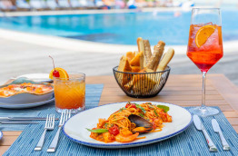 Le Asian Wok est construit sur pilotis. Il propose des spécialités asiatiques ainsi qu’un Teppanyaki. The Reef, installé sur la plage, cuisine entre autres des produits de la mer grillés au feu de bois. Enfin, goûtez aux spécialités italiennes au restaurant A-Mare, ou aux classiques méditerranéens au restaurant Vilu.