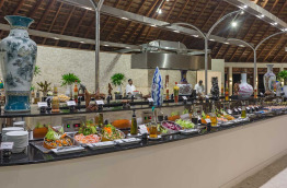 On retrouve tout d’abord 2 restaurants buffet, les pieds dans le sable : le Farivalhu pour les chambres situées au Sud de l’île, et le Maalan pour celles au Nord.