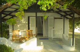 Rihiveli The Dream comprend seulement 48 bungalows indépendants, idéalement répartis autour de l’île, face à la plage. Les bungalows à toits de feuilles de palmier, sont simples mais fonctionnels. Avec une superficie d’environ 22 m2, vous trouverez le confort nécessaire : terrasse ombragée avec une table et deux chaises, des chaises longues, parfois un hamac, une salle de bains avec douche et un ventilateur de plafond. Il n’y a pas d’air conditionné, mais les bungalows sont très bien conçus pour que l’air circule et fournisse une ventilation naturelle.
