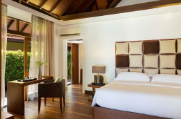 34 Beachfront Deluxe Bungalows (74 m2) sont similaires aux précédents, avec quelques détails de décoration supplémentaires et une meilleure situation, sur la plage, du côté Ouest de l'île.