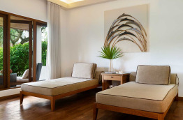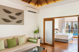 8 Garden Pool Villas (124 m2) sont spacieuses et confortables. Elles bénéficient d'une douche extérieure et d’une piscine privée dans un jardinet clos. À l'intérieur, le salon peut se transformer en chambre indépendante à la nuit tombée.