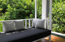 Noku Maldives comprend 50 villas intelligemment réparties pour préserver une parfaite intimité à chacune d’entre elles. Pour votre confort, ils ont aménagé sur votre terrasse un coin repos très confortable rempli de coussins moelleux, parfait pour la sieste ; vous y trouverez aussi des transats pour prendre le soleil.