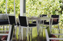 Thari Restaurant, restaurant à la carte, ouvert pour le déjeuner et le dîner, sert une cuisine aux saveurs contemporaines, face au soleil couchant.