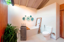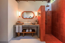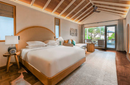 Les 45 Deluxe Sunset Villas individuelles de 47 m2 se trouvent au plus près de la plage, et offrent une sublime vue sur la mer. Elles bénéficient en plus d'une baignoire dans la salle de bains extérieure, d'un canapé, et d’une terrasse plus spacieuse équipée d'une balancelle maldivienne.