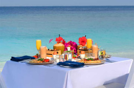 Le bar de la piscine se nomme le Aqua Bar, tandis que le bar de plage est le Atardecer Bar, et le Handhuvaru Bar, est situé quant à lui près des Water Villas.
