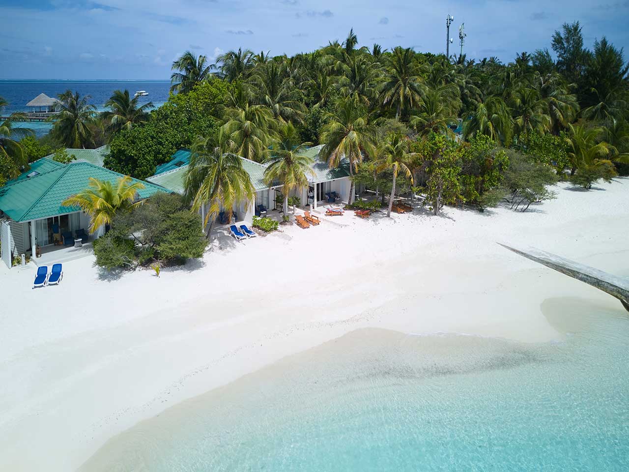 Beaucoup plus spacieuses (45 m2), elles comprennent généralement deux lits doubles, télévision par satellite, minibar, coffre-fort, air conditionné, ventilateur, sèche-cheveux, téléphone. La salle de bains est typiquement maldivienne, ouverte sur l’extérieur, avec douche et baignoire. Chacune bénéficie également d’une petite terrasse aménagée.