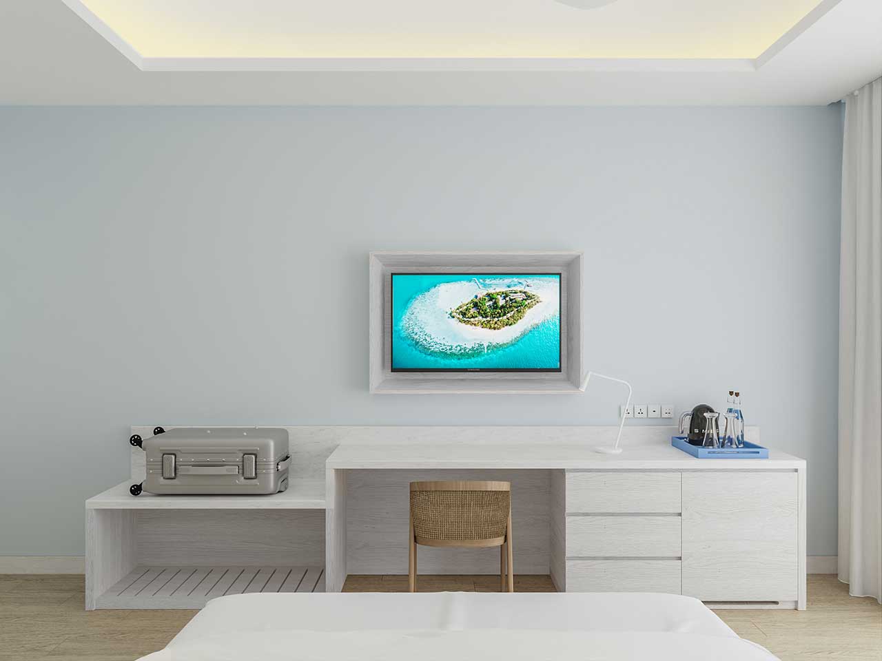16 chambres Seaview Sky Room de 30 m2 construites légèrement en retrait de la plage dans la végétation, dans un bâtiment sur deux niveaux comprenant des chambres mitoyennes. D’un confort sommaire, elles bénéficient d’une salle de bains privée avec douche, de l’air conditionné, télévision, minibar, coffre-fort. Les chambres du rez-de-chaussée bénéficient d'une petite terrasse et celles de l'étage d'un balcon.