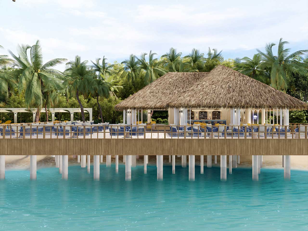 The Blitz Café and Bar en bord de plage sur une terrasse en bois est ouvert jusqu’en fin de soirée, et outre les boissons, propose une carte de plats simples. Quant au Beach Bar, sur le côté Est de l’île, il est ouvert uniquement en journée et propose des plats légers pour le déjeuner.