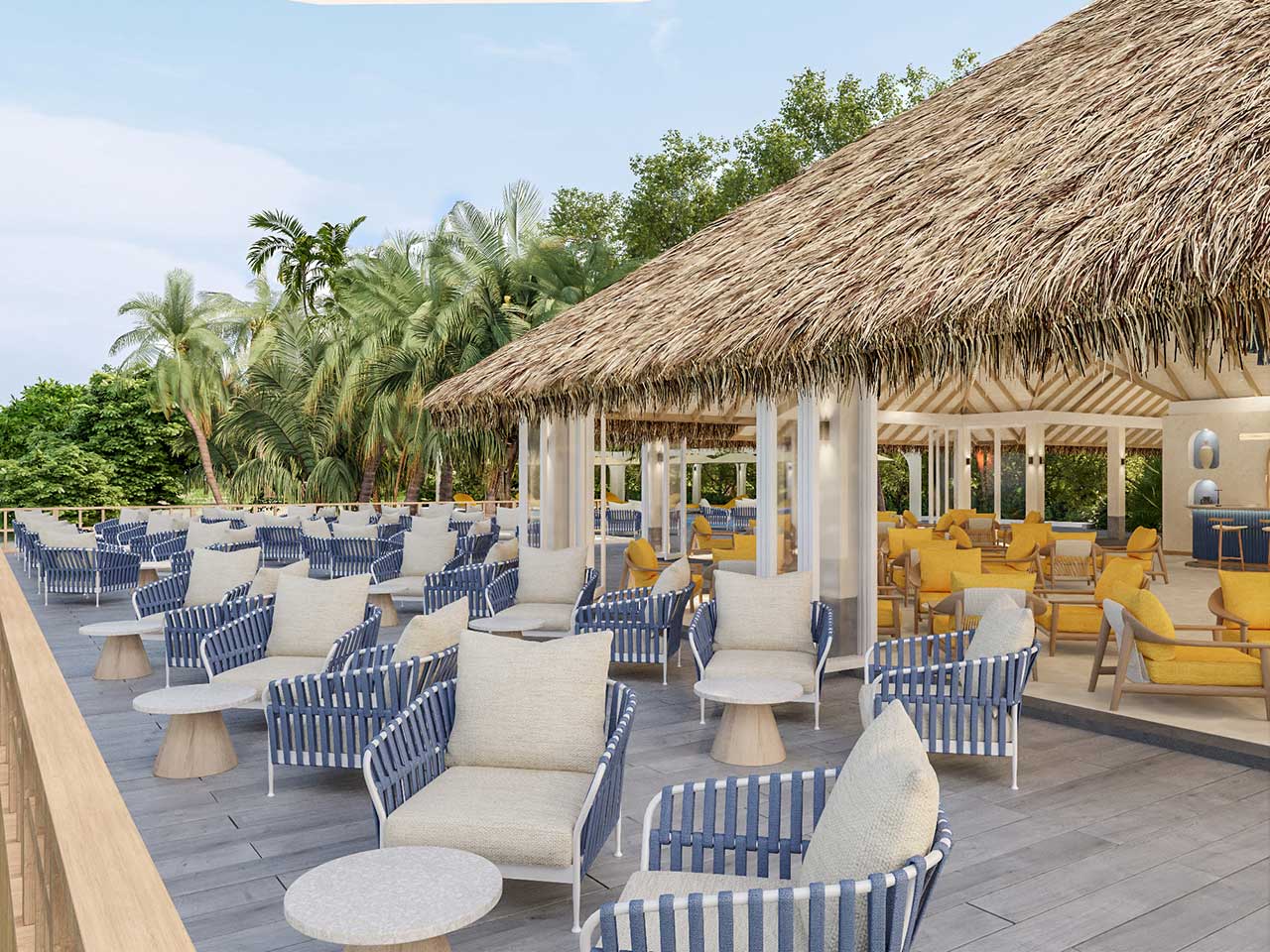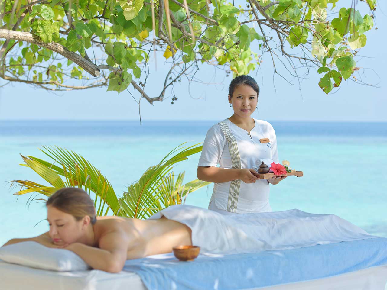 60 chambres Deluxe Beach Villa groupées dans des bungalows comprenant deux chambres et répartis sur la plage tout autour de l’île. Elles ont été récemment rénovées