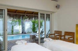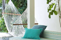 44 Beach View Villas et 16 Garden View Villas, d’environ 48 m2, bénéficient d’un coin repos extérieur. C’est du côté des Beach View Villas que la végétation est la plus belle, ceux qui veulent profiter de l’ombre peuvent se protéger du soleil dans les hamacs. Ces villas bénéficient d’une salle de bains ouverte avec douche extérieure.
