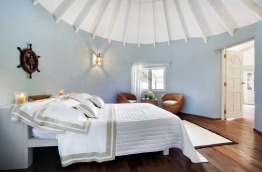10 Deluxe Beach Villas de 100 m2 peuvent accueillir 4 personnes. Face à la mer côté Sud, elles offrent une chambre, une salle de bains avec douche extérieure, un bain à jets et un espace extérieur avec balançoire. Leurs occupants disposent de leur propre plage privée.