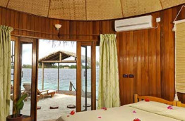 L’île a conservé une taille raisonnable, puisqu’elle comprend uniquement 46 hébergements. Certains sont situés dans les jardins à l’ombre de la végétation, et d’autres bénéficient de leur propre plage privée. Il y a également des bungalows sur pilotis, au-dessus du lagon. À l'intérieur, on y trouve air conditionné, ventilateurs, minibar, nécessaire à thé et café, coffre-fort, sèche-cheveux, TV satellite, téléphone et chaises longues sur la terrasse ou la plage. Les serviettes de bain et de plage sont fournies. L’accès internet Wi-Fi est disponible gratuitement dans toutes les chambres.