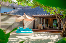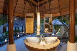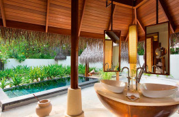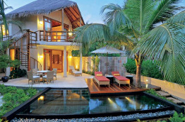 Toutes les villas, y compris celles sur pilotis, ont une petite piscine privée et sont pourvues de l’air conditionné. Elles sont confortablement meublées de bois et de marbre, et équipées de sèche-cheveux, télévision, lecteur DVD, accès internet Wi-Fi gratuit, connecteur pour lecteur MP3, téléphone, minibar et mini-cave à vins, choix d’oreillers à disposition, nécessaire à thé et café, coffre-fort et coin salon. Chaque villa possède aussi une terrasse ou un balcon meublé, ainsi qu’une salle de bains avec douche séparée (intérieure ou extérieure), baignoire et toilettes.