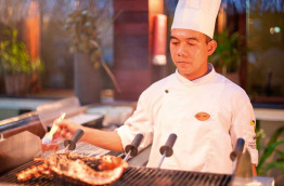 Enfin, on retrouve le Meeru Beach Grill, situé directement sur la plage, les pieds dans le sable. Il sert essentiellement poissons et autres produits de la mer, pour le dîner uniquement.