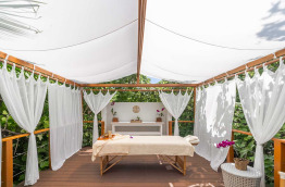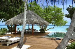 Les 9 Beach Villas sont disséminées dans la dense végétation de l’île. Elles offrent un confort de haut niveau sur une surface totale de 122 m2, et des vues spectaculaires sur la plage et le lagon turquoise. La végétation peut cependant brouiller votre vue sur l'océan.