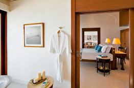 11 Beach Villas - One Bedroom, directement les pieds dans le sable pour que vous vous sentiez immédiatement au paradis. Chacune bénéficie d’un accès direct à la plage tout en étant judicieusement construite dans un environnement naturel très vert afin de préserver votre intimité. Le spacieux salon-séjour donne directement sur une terrasse abritée qui vous réserve une belle vue panoramique sur la mer.