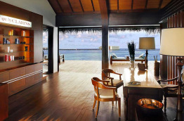 Trois bars sont à votre disposition : le Beach Bar, en bord de piscine et sur la plage, le Falhumaa Bar, adjacent du restaurant sur pilotis, et The Library Bar à l’étage, au-dessus de la réception.