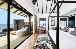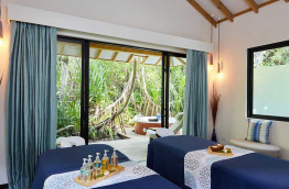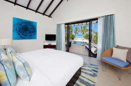 Les villas sont spacieuses, lumineuses et décorées avec beaucoup de goût, mêlant style contemporain sobre et chaleureux dans les tons clairs avec des touches de couleur, ainsi que des éléments traditionnels maldiviens. Chaque villa est pourvue d’une terrasse équipée de chaises longues, ainsi que d’un coin salon à l’intérieur.