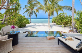 6 Beach Villas with Private Pool de 121 m2, offrant une plus grande salle de bains pourvue d’une petite piscine privée dans l’intimité de votre jardin intérieur… des chaises longues sont également à disposition autour de la piscine.