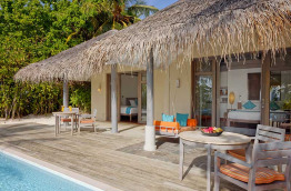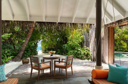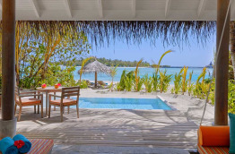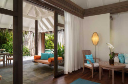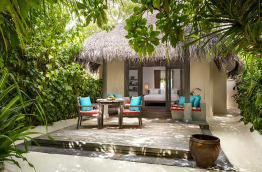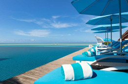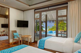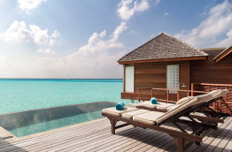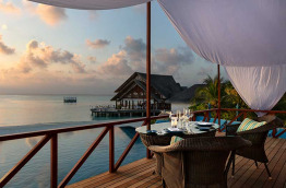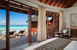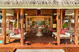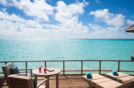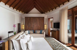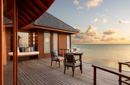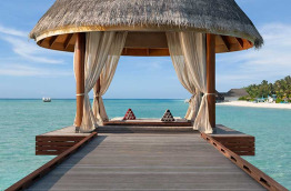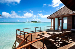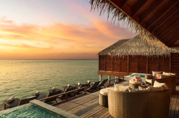19 Sunrise Over-Water Suite côté soleil levant, et 15 Sunset Over-Water Suite au soleil couchant, construites sur une surface de 70 m2 chacune, sur pilotis au-dessus du lagon. Les équipements sont identiques aux Beach Villas, à ceci près que la chambre est plus lumineuse, la salle de bains est fermée, et vous bénéficiez d’une machine à expresso. La terrasse de 49 m2 est aménagée et bénéficie d’un accès direct au lagon.