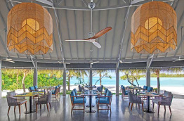 Fushi Café, situé sur la plage, est le restaurant principal, qui sert le petit-déjeuner et le dîner sous forme de buffets internationaux.