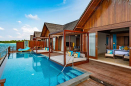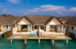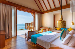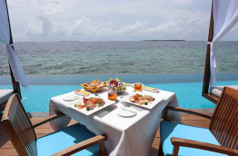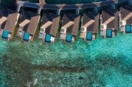 Les 9 Sunrise Ocean Pool Villas et les 9 Sunset Ocean Pool Villas mesurent environ 160 m2. Également construites sur pilotis sur le ponton Sud, elles sont en plus dotées d’une petite piscine privée donnant sur l’océan.
