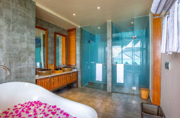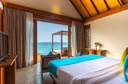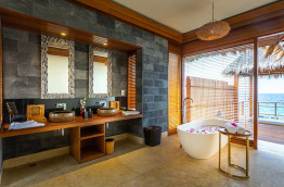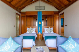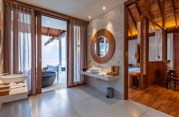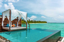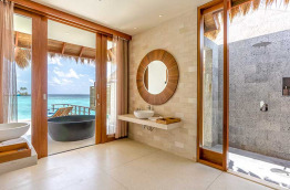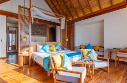 Plus récentes, les 12 Ocean Villas Infinity d’environ 150 m2 se trouvent sur l’autre ponton, au Sud de l’île, et sont les plus proches de la plage. Elles peuvent accueillir jusqu’à 2 adultes et 2 enfants, ou 3 adultes et 1 enfant.