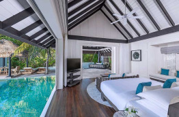 Naladhu Private Island Maldives comprend seulement 20 villas, dessinées comme des villas privées pour que vous vous sentiez totalement chez vous. Elles ont des plafonds très hauts et une décoration tropicale coloniale sobre. Vous aurez l’impression d’être dans une luxueuse maison de vacances, une bibliothèque est même prévue dans chaque villa.