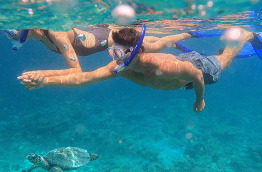 Le snorkeling est organisé en bateau uniquement, le lagon est trop grand et trop peu profond pour que ce soit intéressant en partant de la plage. Le matériel de plongée libre est prêté gracieusement.