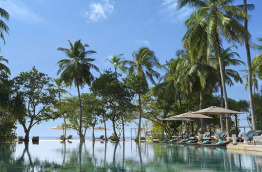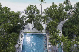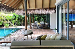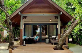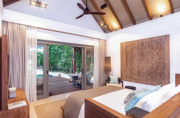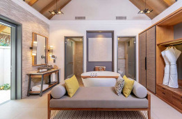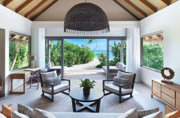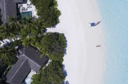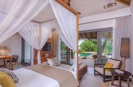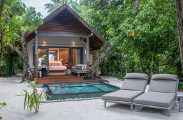 10 Beach Villas with Plunge Pool de 115 m2 sont nichées dans la végétation sur la partie Nord de l’île. Très proches de la plage, elles bénéficient d’un bain à jets devant la villa, et d’une terrasse faisant face à la mer. La salle de bains est sur l’arrière de la villa.