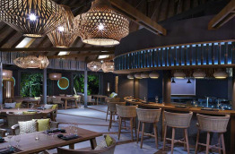 Deux bars sont ouverts en permanence. Le Cabana se trouve proche de la piscine, et le Lagoon Bar est stratégiquement positionné sur pilotis, offrant un environnement de choix pour profiter des températures tropicales et du coucher de soleil.