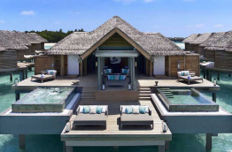 Enfin, pour les familles ou petits groupes d’amis, The Vakkaru Overwater Residence est une très luxueuse villa de 950 m2 construite en bout de jetée, vous assurant de superbes couchers de soleil. Construite sur deux niveaux, le rez-de-chaussée comprend deux chambres, chacune avec salle de bains privée, grand salon-salle à manger et une cuisine-office. Les deux autres chambres, qui ne bénéficient pas de douche extérieure, sont situées au niveau supérieur. Une immense terrasse est pourvue d’une très belle piscine de 60 m2, d’un coin repas ombragé, de zones de repos, au soleil ou à l’ombre ainsi que de filets au-dessus de l’eau.