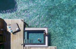 5 One Bedroom Overwater Pool Residences de 300 m2 bénéficient d’une chambre, d’un grand salon, d’une salle de bains, et d’une grande terrasse sur toute la longueur de la villa qui offre en plus une belle piscine de 62 m2 face à la mer. Elles sont parfaitement orientées pour profiter du coucher de soleil.
