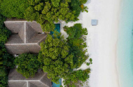 20 Beach Pool Villas se trouvent de part et d’autre de l’île. Avec leurs 220 m2, elles sont équipées d’un coin lecture séparant la chambre et la salle de bains, pouvant être transformé en une seconde chambre pour accueillir deux enfants par exemple. Toutes les pièces, y compris la salle de bains, sont orientées vers la plage, et une petite piscine est disposée sur le devant.