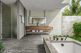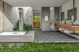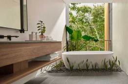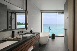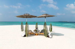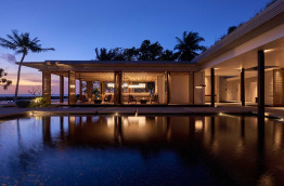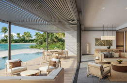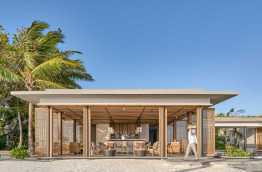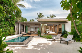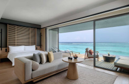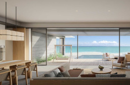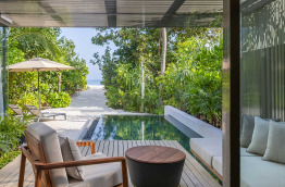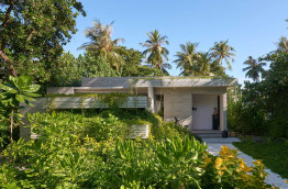 Les Beach Villas d’environ 202 m2 se trouvent tout autour de l’île, face à la mer. Elles sont entourées de verdure, et offrent un accès direct à la plage de sable blanc. Elles sont composées d’une chambre avec un lit king-size, d’un grand salon séparé, et d’une salle de bains semi-extérieure avec douche et baignoire. Elles peuvent accueillir jusqu’à 2 adultes et 1 enfant.