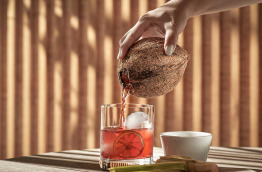 En fin de journée, rendez-vous au Yakitori Bar pour savourer un cocktail les pieds dans le sable en admirant les changements de couleur dans le ciel au moment du coucher de soleil.