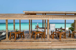 Les villas, sur la plage ou sur pilotis, offrent beaucoup d’espace et d’intimité. Elles bénéficient toutes d’une piscine privative, et incluent les services d’un majordome personnel disponible pour toute demande. Au niveau de la restauration, vous ne serez pas déçus : 6 bars et restaurants sont répartis sur l’île. De belles découvertes gustatives vous attendent dans ce décor idyllique.