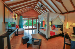 71 Sunset Beach Villas identiques, se trouvent quant à elles sur le côté Ouest à l’intérieur de l’atoll. La seule différence au niveau des aménagements réside dans la décoration murale.