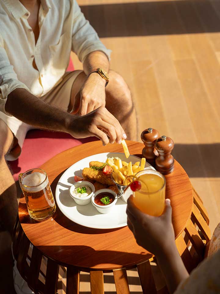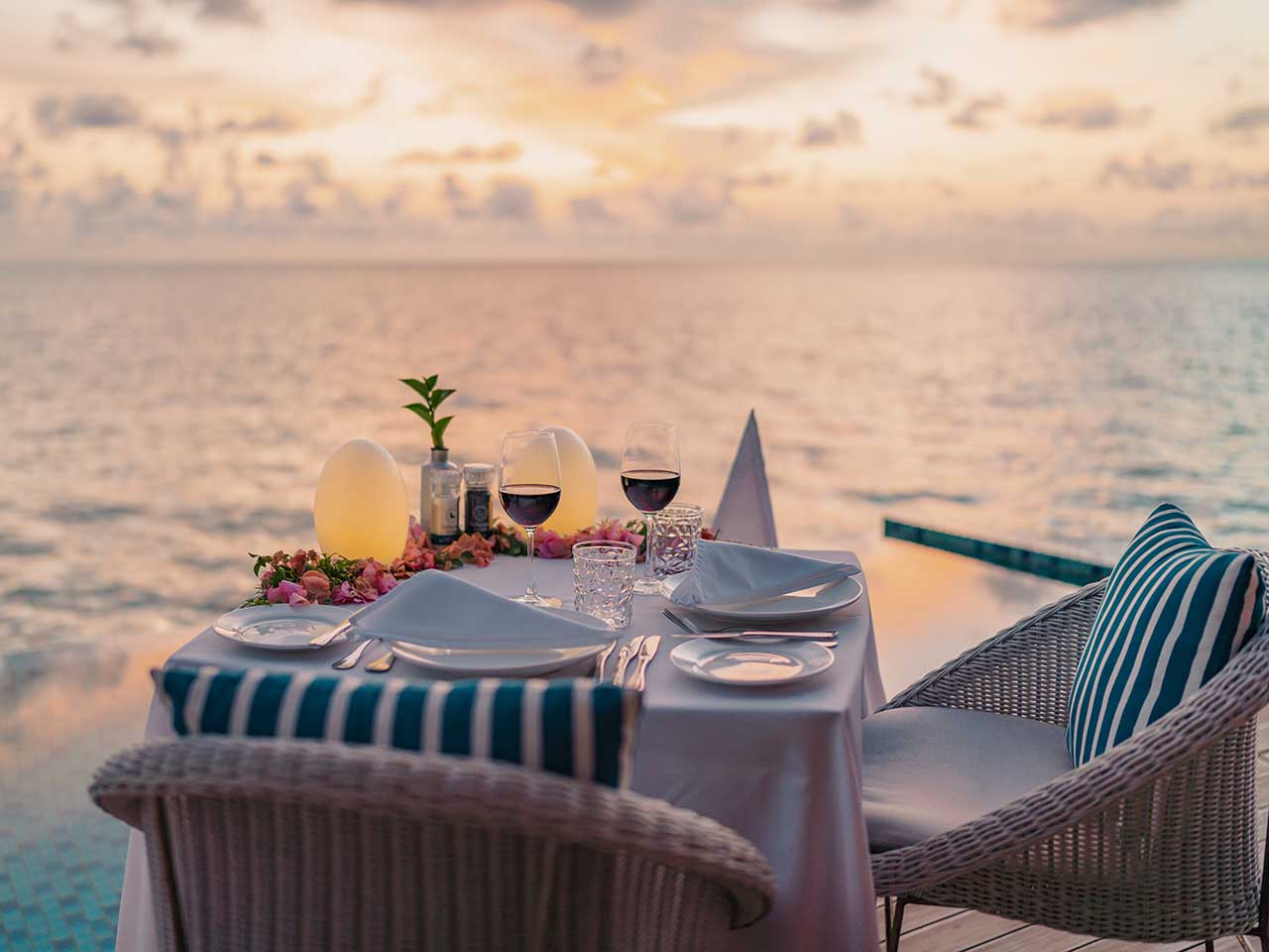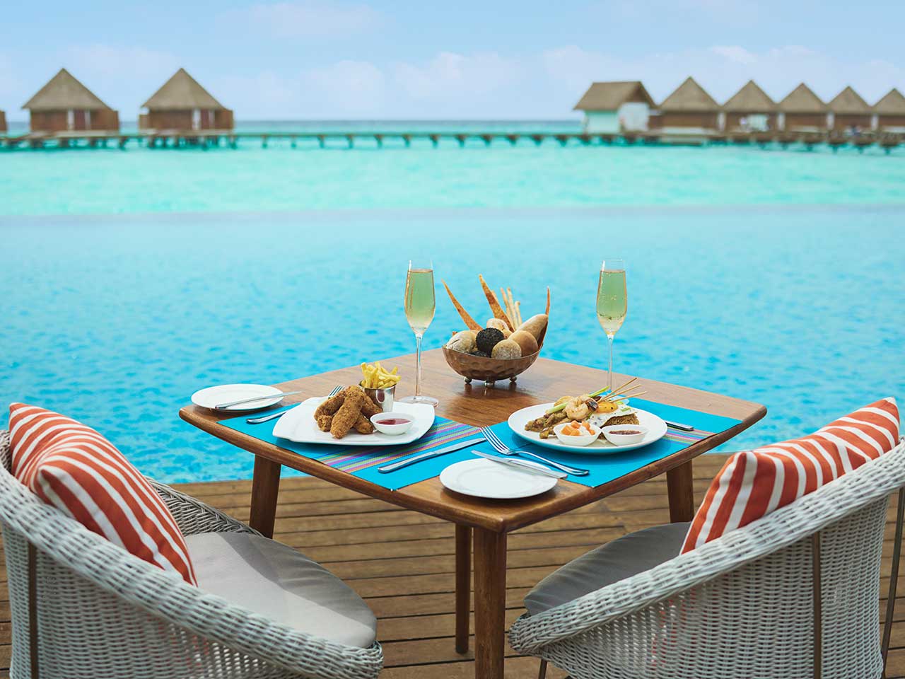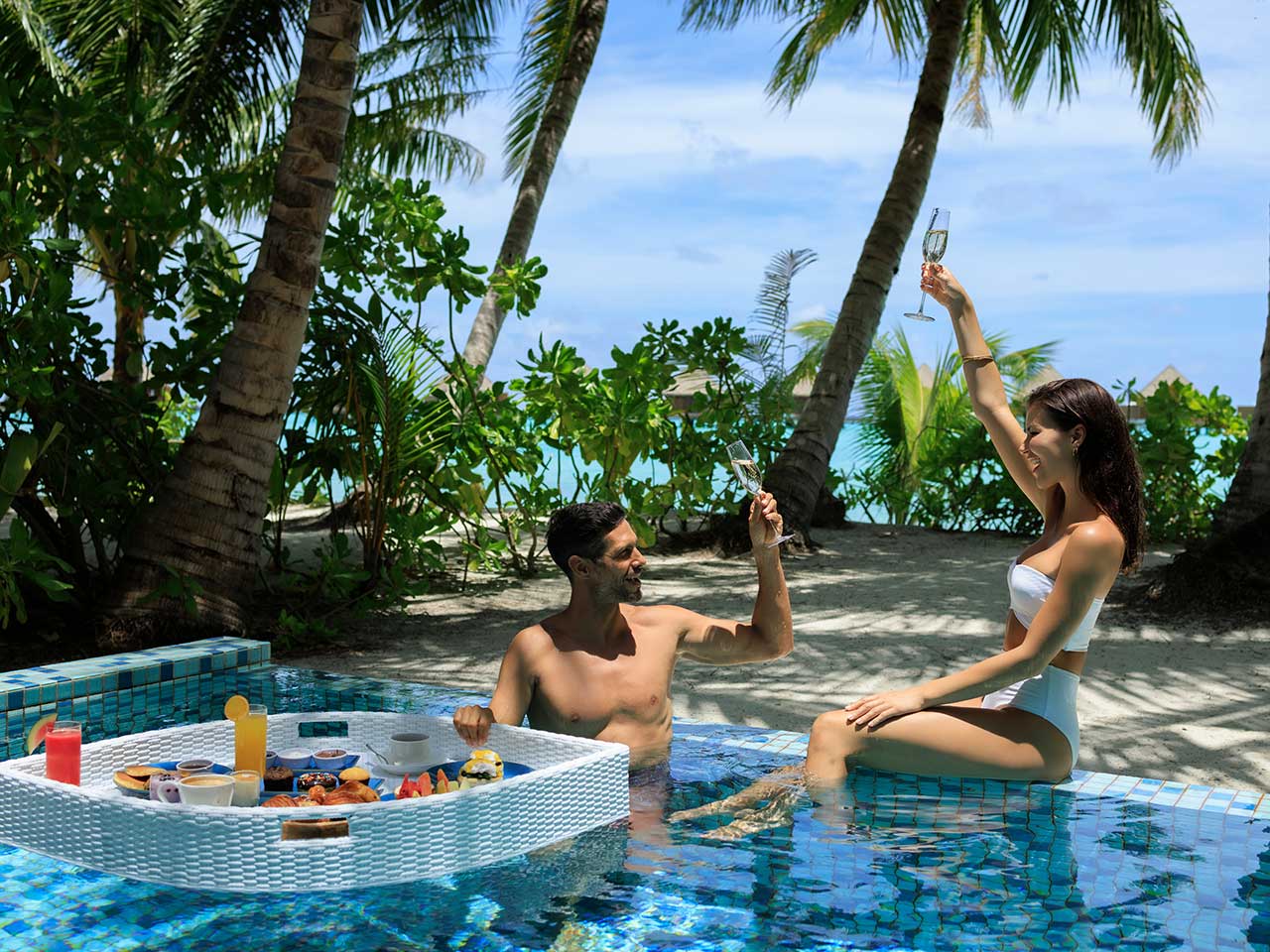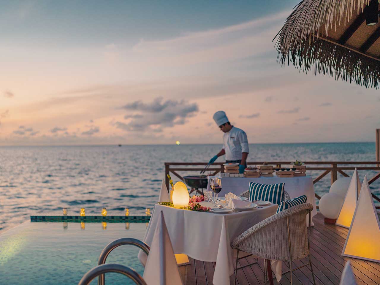 Pour une occasion spéciale, l’hôtel pourra aussi vous organiser un dîner sur la plage, un petit-déjeuner flottant, où même un repas servi directement dans votre villa, à la demande.