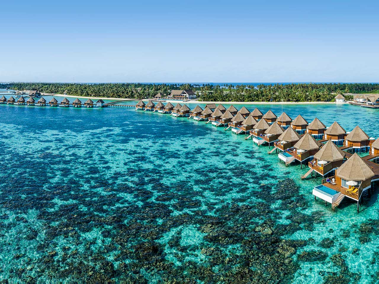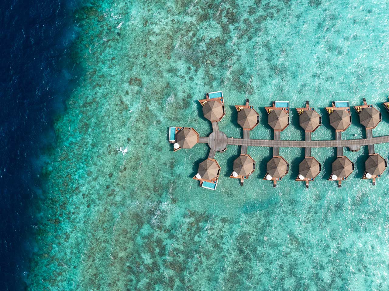 15 Over Water Sunset Pool Villas sont en plus dotées d’une piscine privative de 3 m sur 6. Parmi elles, on retrouve la Over Water Sunrise Pool Villa côté lever de soleil, et la Over Water Reef Pool Villa, située tout au bout du ponton.