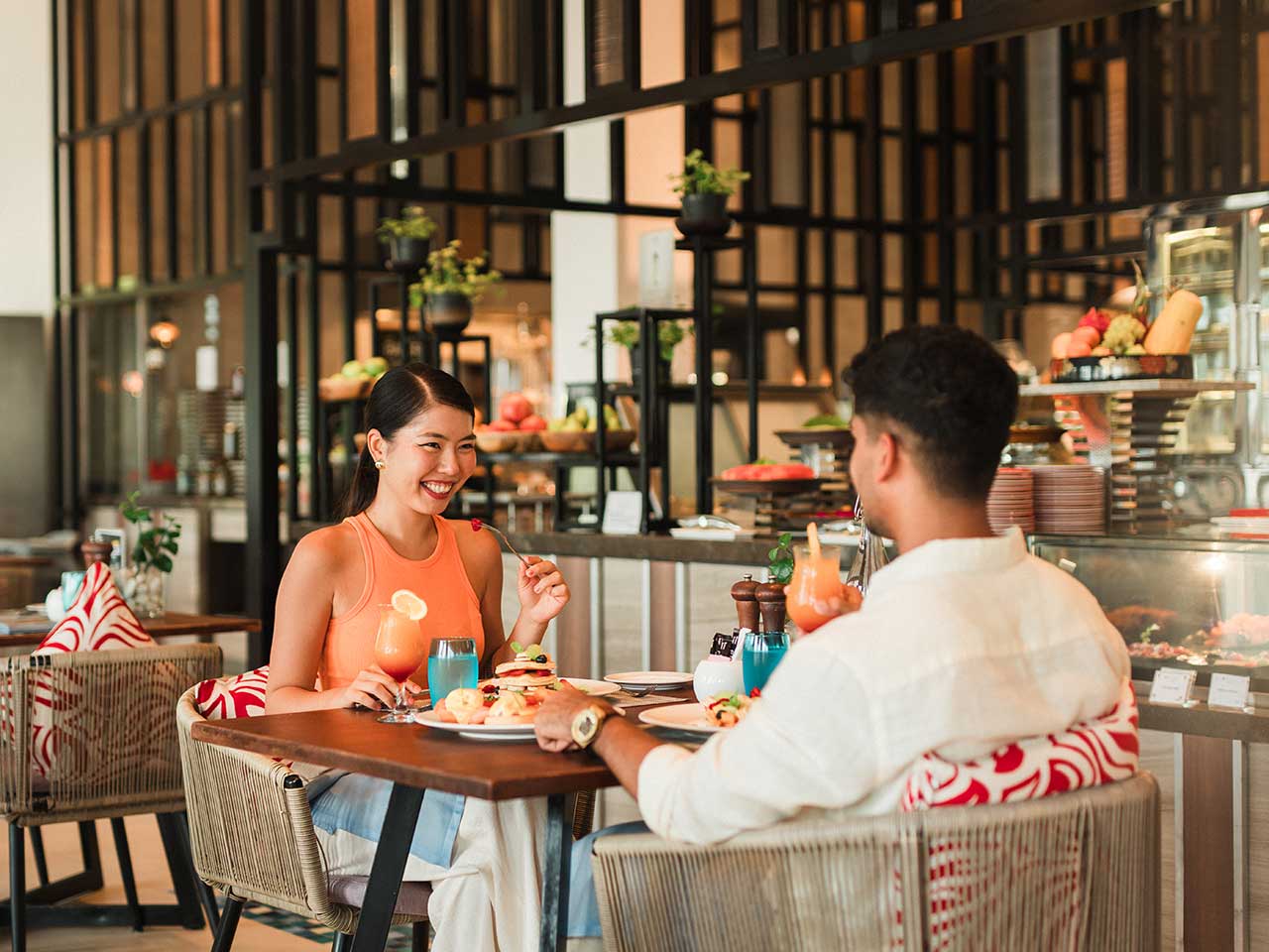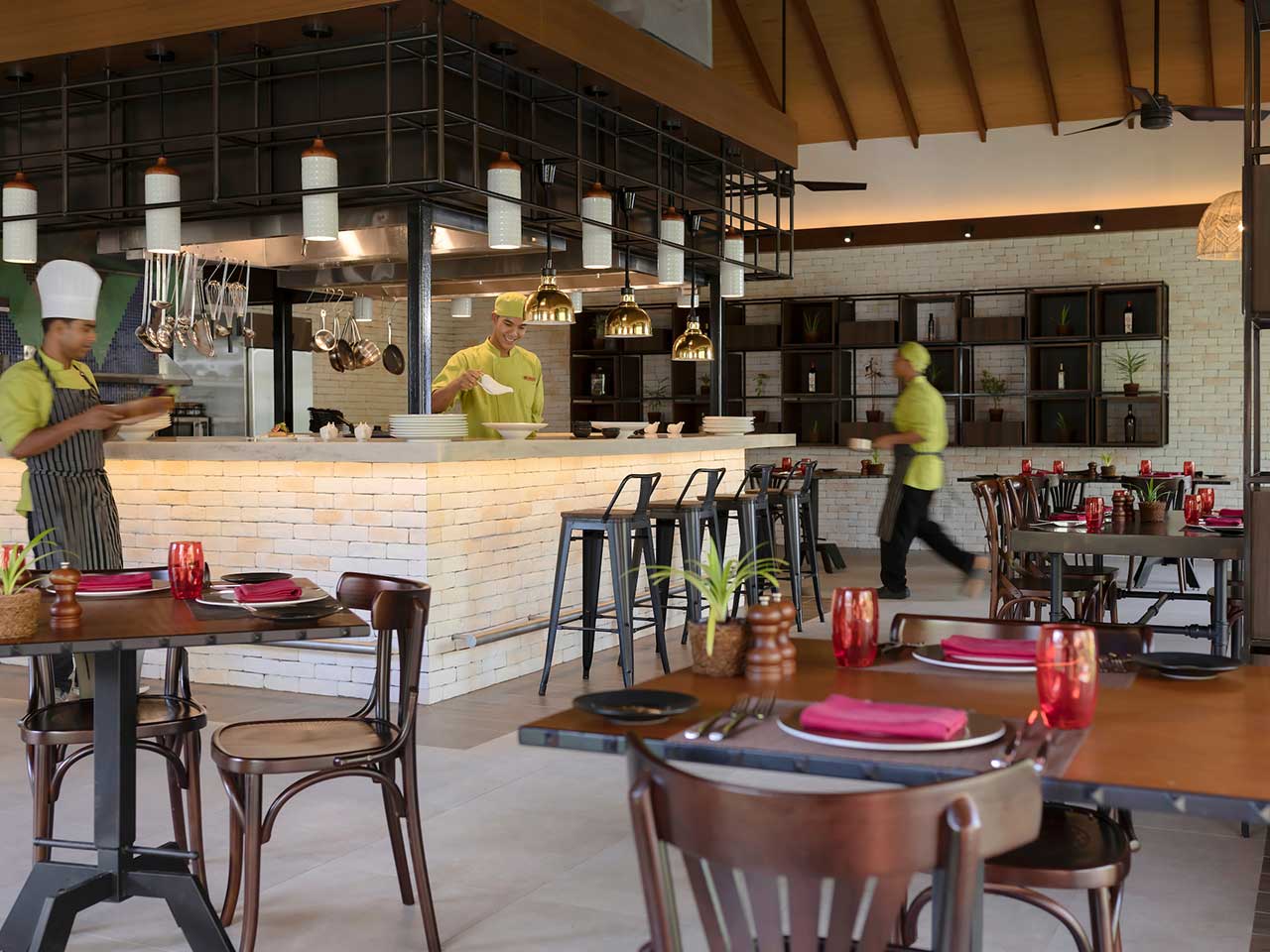 Le restaurant principal Mélange se trouve en bord de plage, et vous accueillera pour le petit-déjeuner, le déjeuner et le dîner. Les repas sont proposés sous forme d’un buffet très généreux et varié. Vous pourrez vous installer à l’intérieur, ou bien sur l’agréable terrasse pour profiter du cadre, avec vue sur la piscine principale.