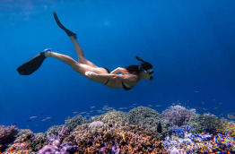L’hôtel dispose d’un centre de plongée PADI, le Suvadiva Dive Center, proposant des cours pour tous les niveaux. L’île se prête particulièrement au snorkeling et à la plongée : les eaux de l’atoll de Gaafu Alifu sont très préservées et encore peu explorées. Elles vous réservent des plongées fabuleuses sur les récifs mais aussi dans la passe de Kooddoo toute proche.