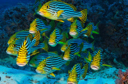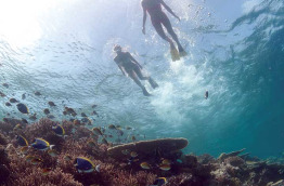 Le grand atout de Sandies Bathala Resort est certainement la beauté et la richesse de son récif corallien. Directement depuis la plage, avec un simple masque et des palmes, vous pourrez admirer de superbes formations coralliennes et une faune très riche. Vous ne risquez pas de vous ennuyer tant le récif est magnifique et bien préservé. L’île de Bathala étant située en bordure extérieure, elle est brassée par les courants qui apportent de riches nutriments et la faune qui va avec. Le « Marine Lab » organise des sorties guidées par un biologiste marin sur le récif.
